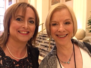 Earlier in the day, I had the opportunity to hang out in Caitlyn Jenner’s suite at the Waldorf. She was in a bathrobe getting her hair and makeup done. I didn’t think it fair to take a photo of that, since I wouldn’t want anyone to do that to me. But here’s a photo of Deedie and me, after getting some professional treatment in the “green room”: