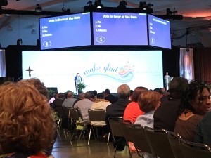 Synod worship was worship of a couple of thousand people, with huge screens throughout the large convention hall. And, that’s not all. The order of worship was not found on printed paper materials. Instead, it was available online or on the Synod “app.”