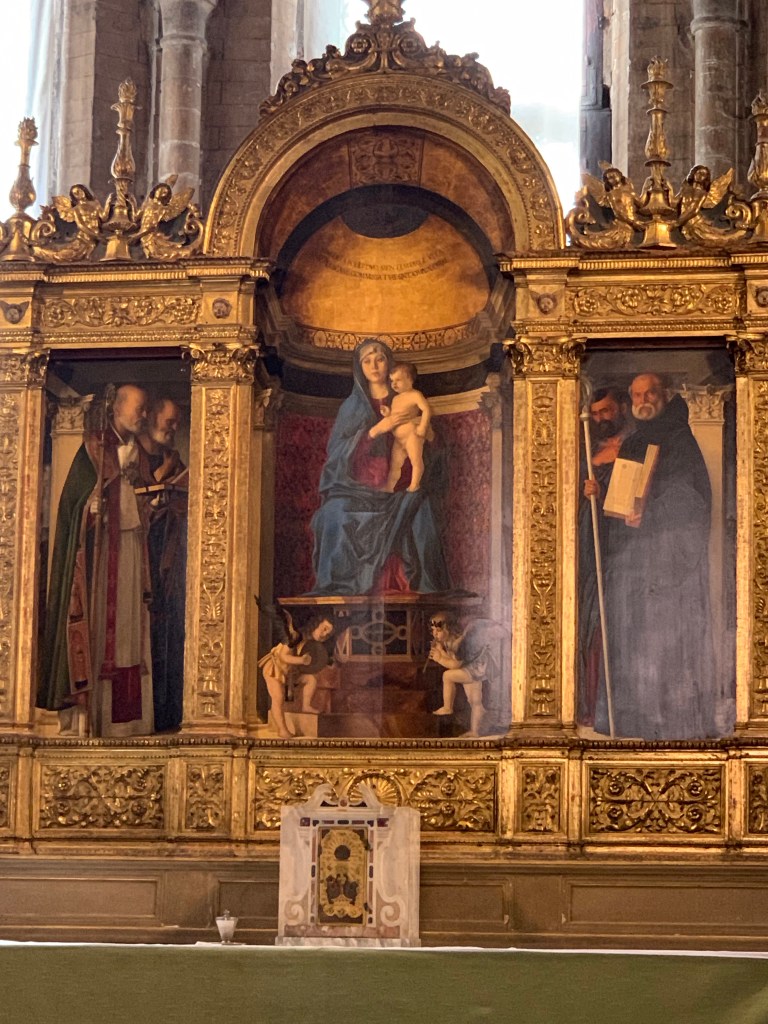 In several churches, we were able to see works of a family favorite, Giovanni Bellini. It’s really Bellini who launched my daughter into a major in art history and now a second art museum internship. We, as a family, had visited a special collection of Bellini paintings in Rome in 2008 (because Margaret, at the age of 12, had become completely enchanted with the artist). But, in Venice, we were able to visit a few pieces, mostly in the form of Madonna and Child paintings, in various churches– where they belong.