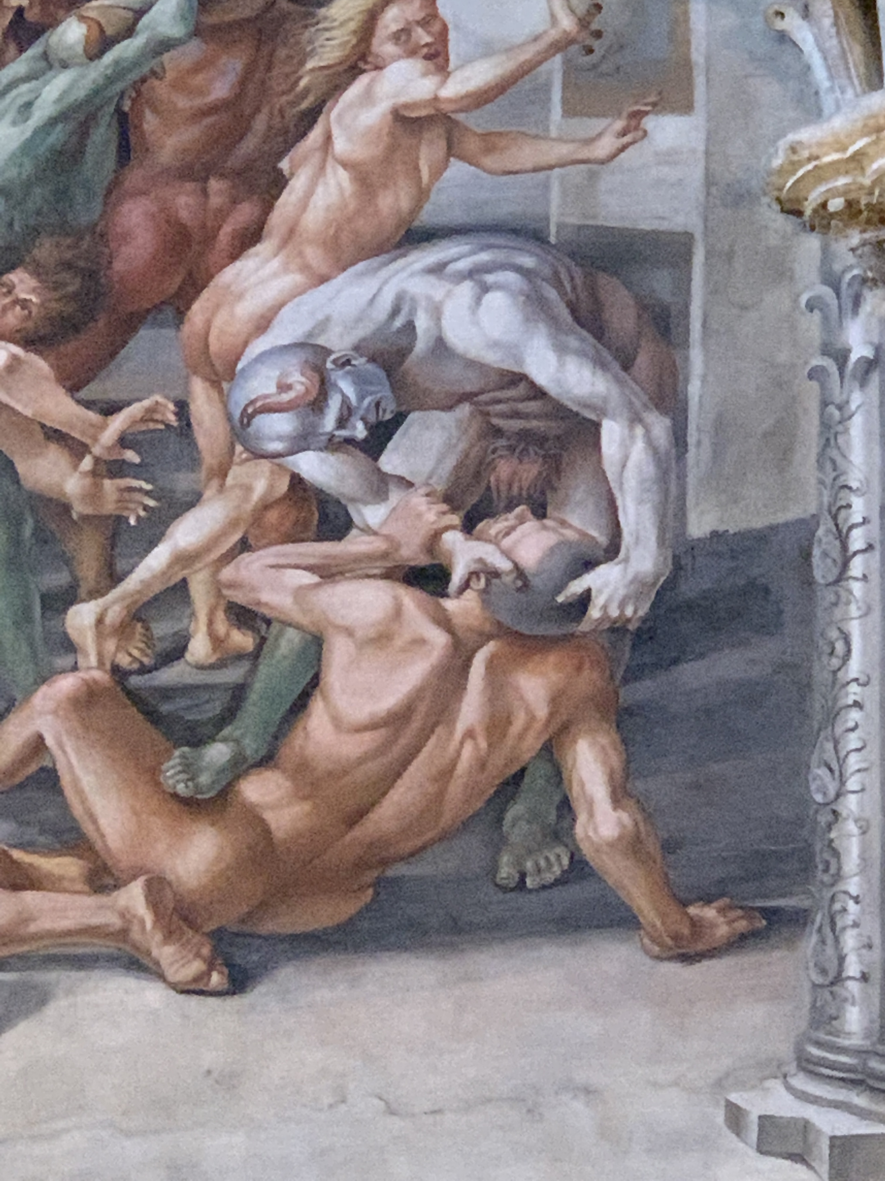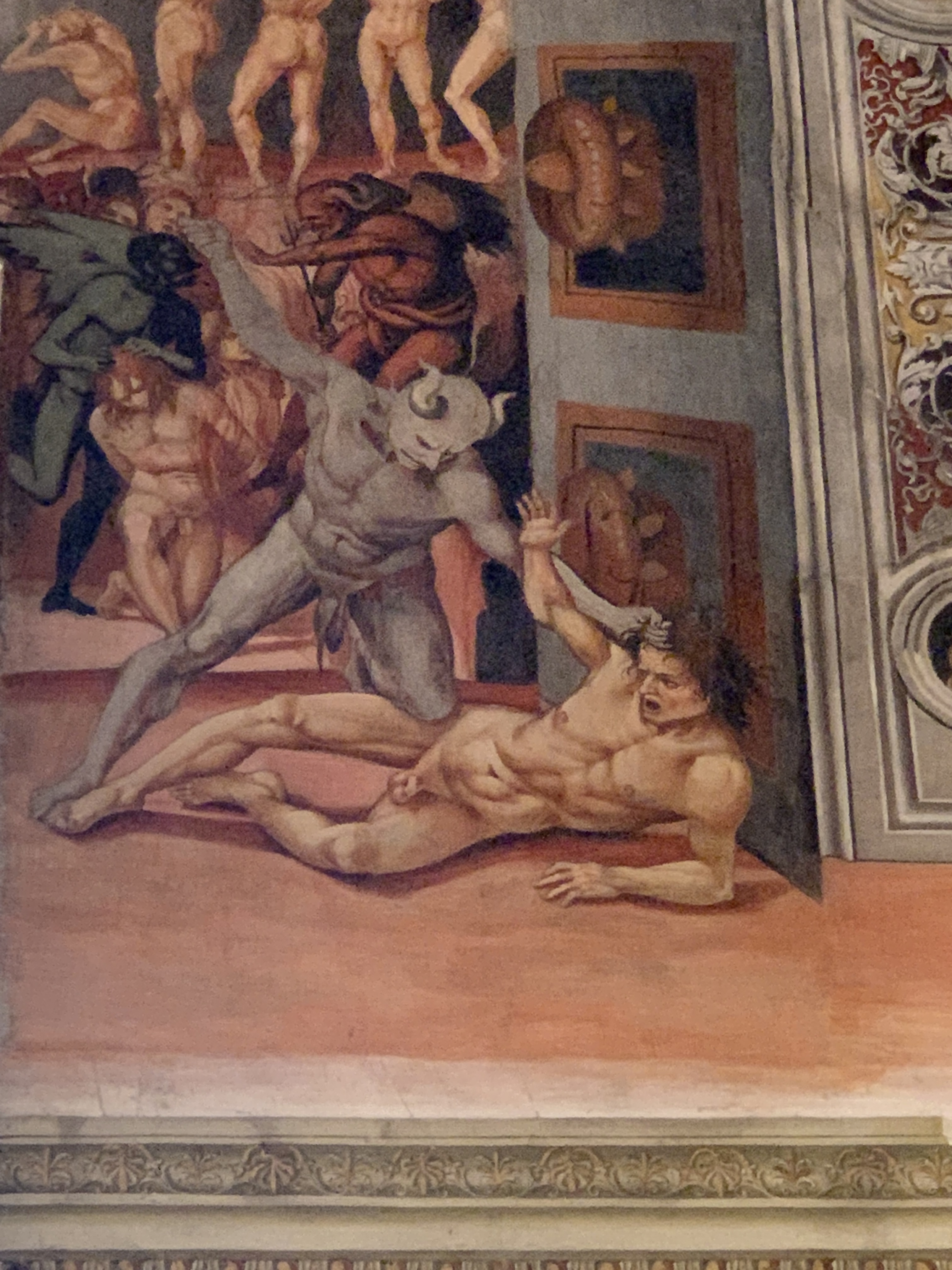 The artwork of some churches seemed driven simply to scare people, using demons and the torments of hell to inspire, I suppose, faithfulness and good behavior. Here are a couple of photos from the Duomo in Orvieto: